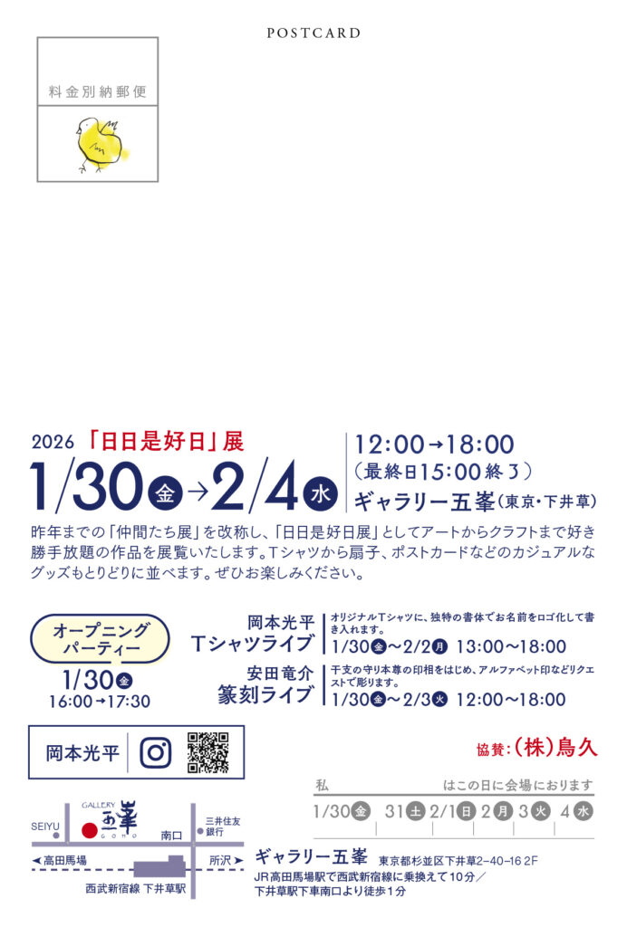 1/30(金)より東京・下井草で開催されるグループ展に参加します。